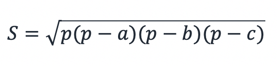 Имея вычисленное значение полупериметра, можно вычислить площадь по следующей формуле: