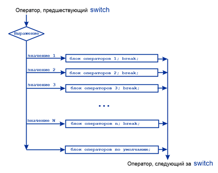 Структура оператора множественного выбора описывается следующей схемой.